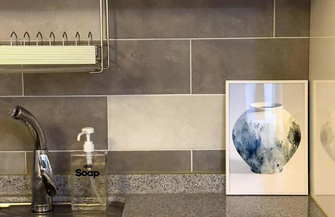 Guests can make use of a fully-equipped kitchen in this apartment to whip up a tasty homemade meal.
